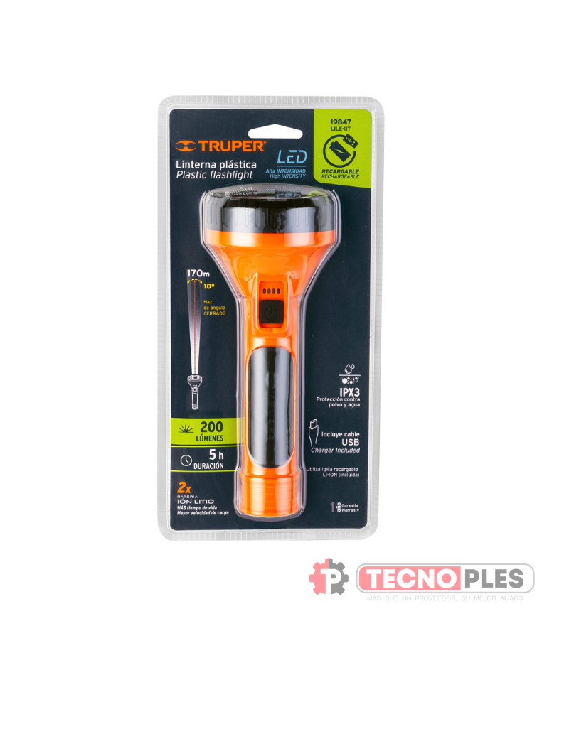 19847 LINTERNA PLASTICA RECARGABLE 200LM TRUPER